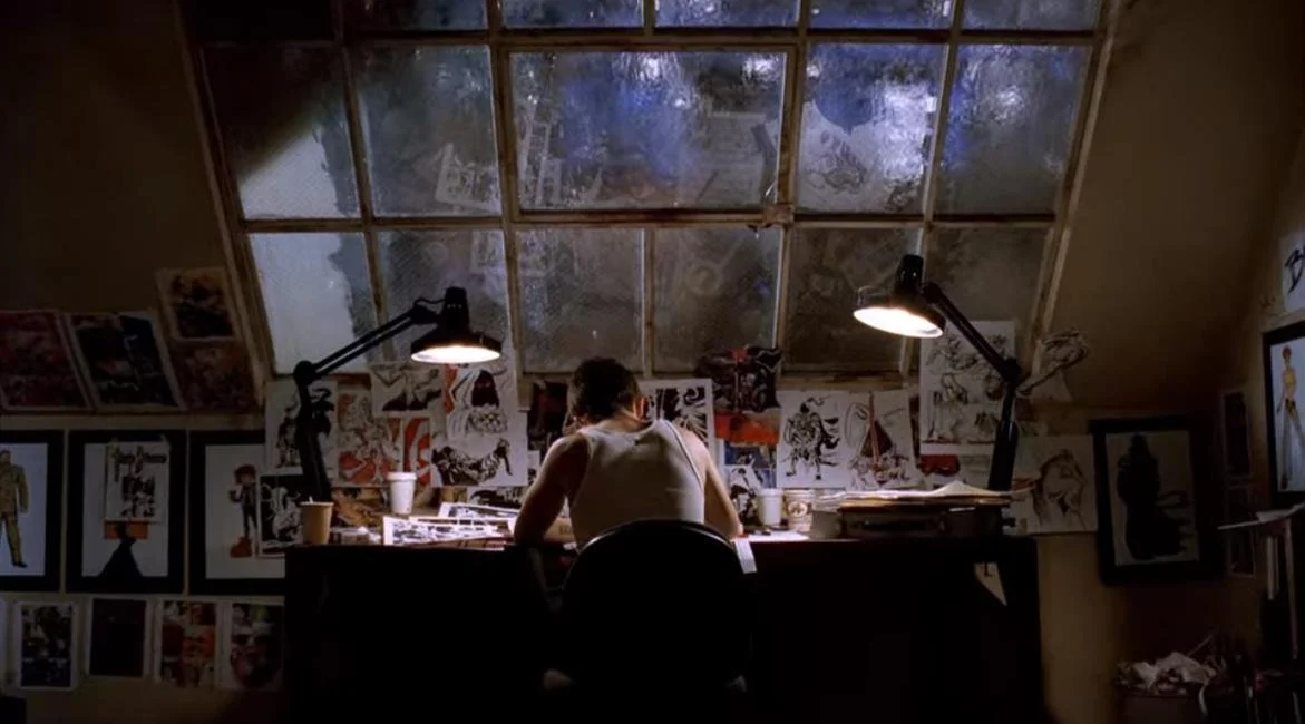 Throughout the episode, we’re pulled between dreams, flashbacks, and the present, so the timeline feels super chaotic, which is entirely fitting for this episode once everything comes together. So, back to Frankie Muniz, who is dreaming?? No its a flashback to him with what I can assume is his cute blonde girlfriend who is trying to decide what to leave as her voicemail message. Jonny, as we learn is his name, is abruptly woken up by his invading publisher who is coming to pick him up for an event. He comes into Jonny’s studio apartment and makes note of Jonny’s new violent turn in his drawings.